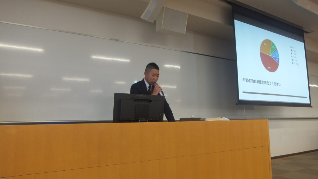 食品品質プロフェッショナルズでは関西大学において食のリスクマネジメント講座を提供しております。こちらは2025年10月10日「教育機関から見た食品産業」と題した大高講師登壇風景です。
